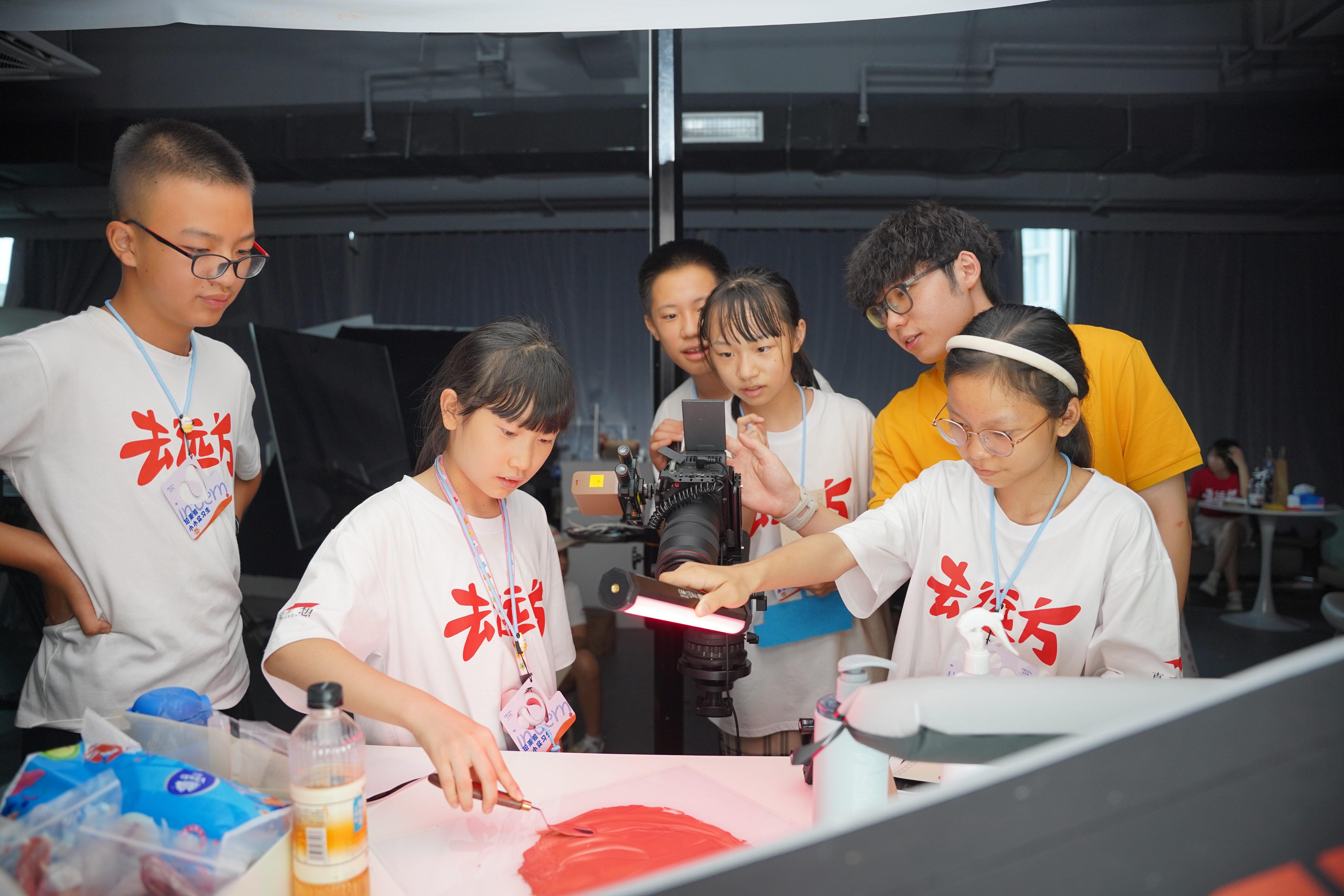 在为期半天的“小小实习生体验营”里,来自四川自贡和山西运城的同学们在h视频 杭州总部体验到了摄影师、导演、特道老师、灯光师、主播、彩妆研发工程师、产品设计师等不同的职业。