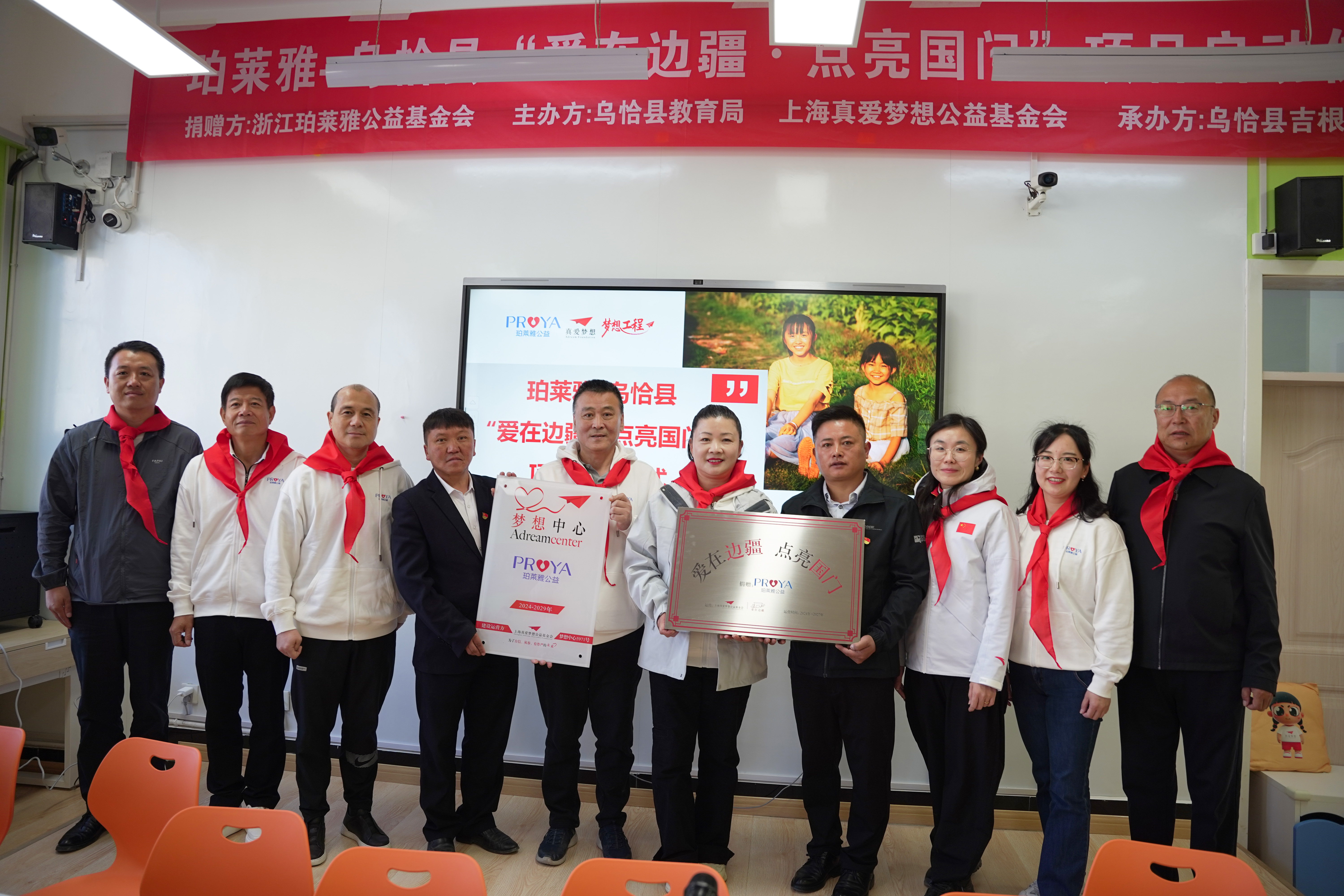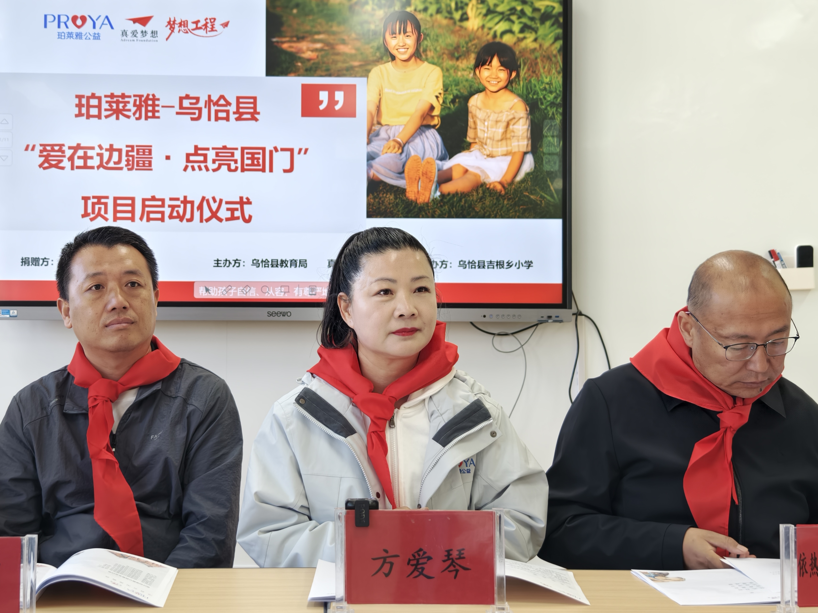 上午10点半,在吉根乡小学新建成教学楼的梦想中心教室里,h视频 ·乌恰县“爱在边疆·点亮国门”公益项目启动仪式正式开启,克州教育教学研究中心主任、乌恰教育局党组书记和局长、真爱梦想公益基金会秘书长等出席活动。h视频 公益基金会理事长方爱琴和公益生态伙伴代表将“爱在边疆·点亮国门”和“梦想中心”两块项目授牌传递给校方代表,标志着该项目正式落地。h视频 公益基金会秘书长方秦伟为学校老师们送上h视频 礼盒和茶叶,祝福大家教师节和中秋节快乐。