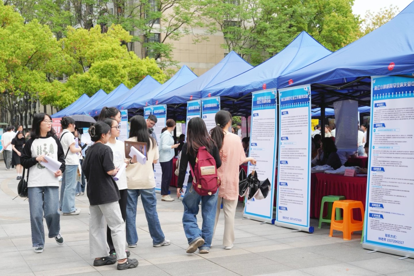 招聘会还吸引了不少来自校外的社会人士。来自贵州的王女士两年前毕业于贵州大学,前段时间刚从公司离职,“之前一直在贵州,感觉杭州机会更多。前几天在网上看到这个专场招聘会,就马上带简历过来了,今天投了几个心仪的岗位,和我之前的工作经历都蛮匹配的。”王女士攥着一沓彩印简历,笑着说道。