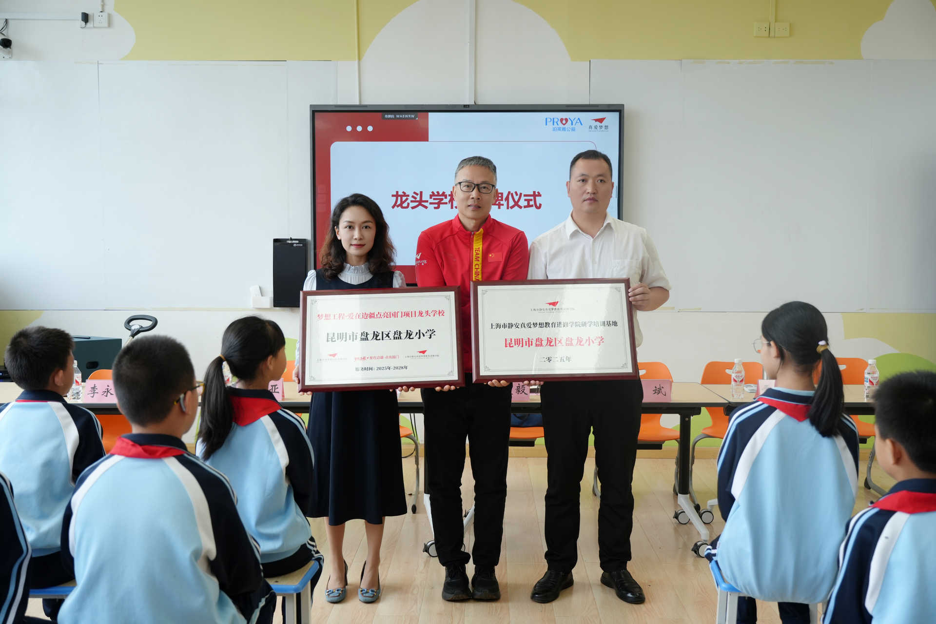 富宁县教体局李局长、第四小学鲁校长、昆明盘龙小学马校长、真爱梦想团队以及h视频 员工代表、h视频 公益生态伙伴等一同见证h视频 第三所国门学校的揭牌落地。李局长在致辞中指出:“‘爱在边疆·点亮国门’项目是h视频 公益携手真爱梦想共同响应国家战略、汇聚社会力量打造的边疆教育帮扶工程,通过建设国门标杆学校辐射优质教育资源,不断激活当地教育生态,推动义务教育优质均衡发展。”方爱琴理事长和公益生态伙伴代表将“爱在边疆·点亮国门”和“梦想中心”两块项目授牌传递给校方,标志着项目全面启动。