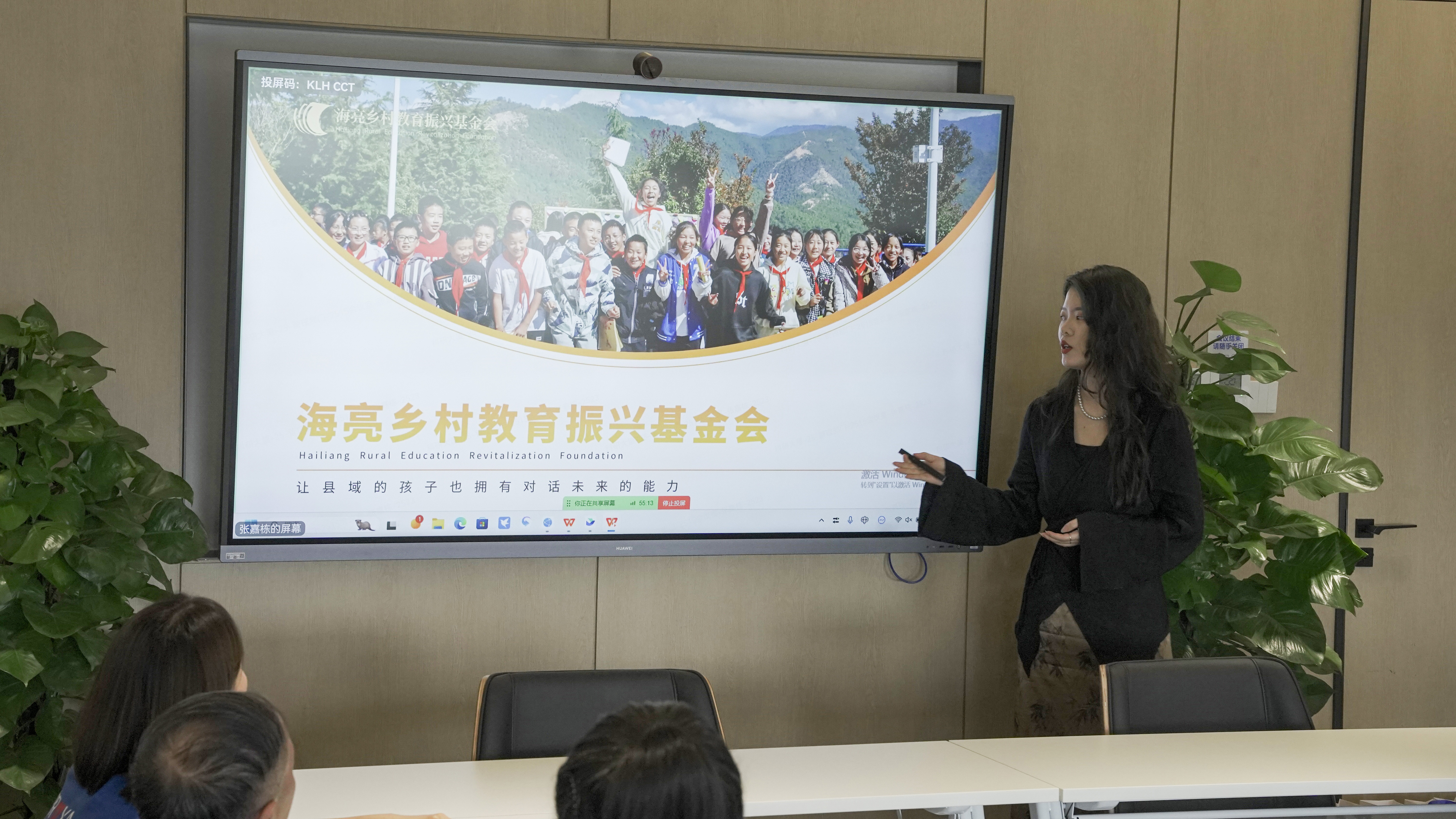 参观结束后,h视频 公益基金会和海亮乡村教育振兴基金会举行公益交流座谈会。海亮乡村教育振兴基金会理事长邵嶷对h视频 公益团队的到来表示热烈欢迎,并介绍了海亮集团的产业内容、文化理念、以及在乡村教育上所取得的荣誉成就,举例提到了针对欠发达县域学生心理问题复杂、干预难度大和专业教师人手匮乏的现状,基金会打造了“童心守护”心理健康标杆项目,为县域层面提供青少年心理健康一体化解决方案,在未来也将持续推动县域教育质量提升与区域优质教育资源均衡发展。