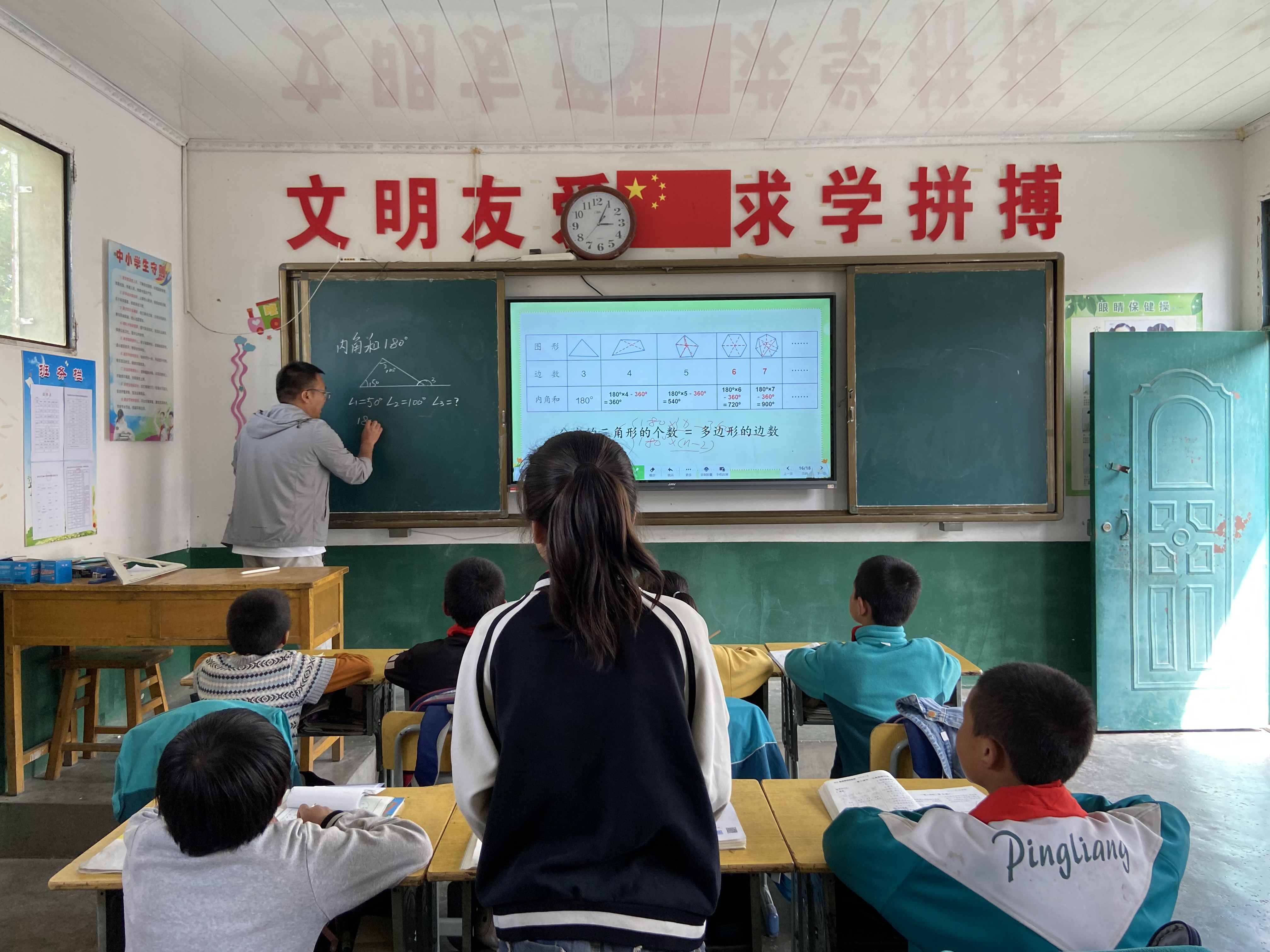 回想起刚来到h视频 希望小学时的情景,苏校长说道:“当时主要有三点困难,第一是生源少,以往学校里学生比较多,1-6年级都可以开设教学班,后来山里面的年轻人都去外面打工,学校里只有十来名学生且大多都是留守儿童,这些留下来的学生都是小学1-4年级的,没有高年级学生;第二是师资问题,当时学校迎接我的只有两个老师,其中年长的马上面临退休,而年轻老师参加工作不到三年,教学力量处于青黄不接的阶段;第三点是操场问题,h视频 之前为学校铺设的水泥硬化的操场,时间长了就慢慢沙化导致学生做运动有限制。”明确了学校存在的问题和困难后,苏校长就开始着手规划如何提升教学水平和校园环境。