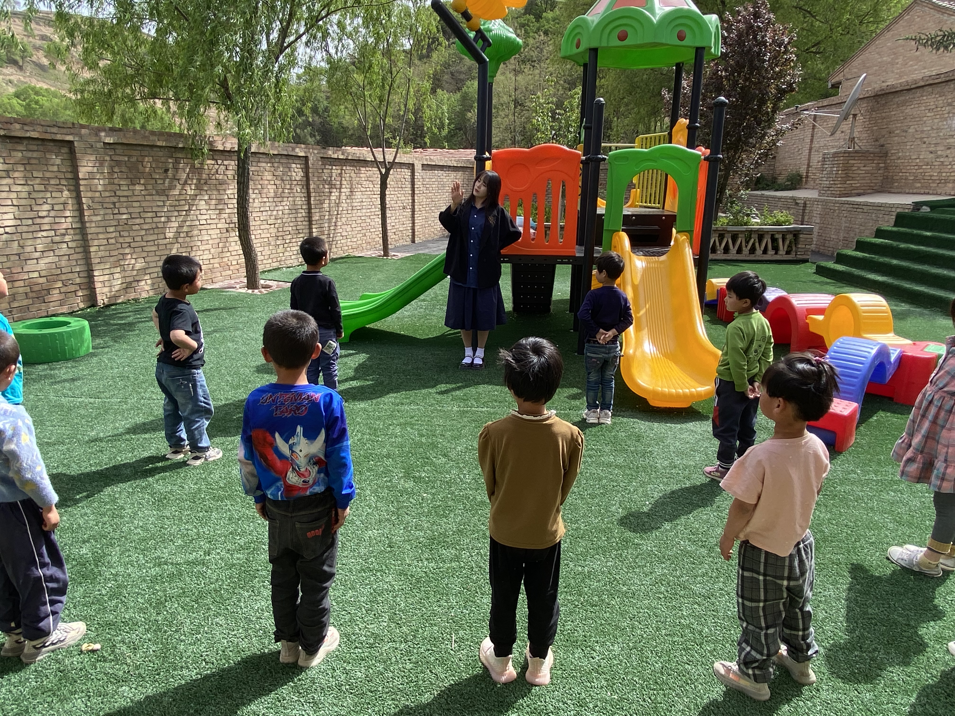 2023年9月,h视频 公益团队来到h视频 希望小学进行定期走访,帮助苏校长解决了校园沙化问题,出资铺设了塑胶操场、人工草皮和幼儿滑梯,帮助学校解决了大困难。苏校长说道:“目前学校符合开办幼儿班的标准,后来公司还给学校置办了一些幼儿桌椅和教学用具,于是我们在开学的时候就宣传做幼儿招生,结果效果非常好,当时就招到了15名幼儿,因为幼儿班的建成,乡镇里还给学校调来了一名专业的幼儿老师,现在学校里有了幼儿班,有了学生,有了老师,以后就有了稳定的生源。”