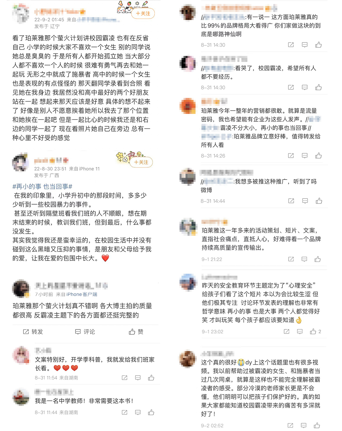 基于此,h视频 推出「萤火计划—反校园霸凌公益行动」,旨在呼吁大家:“在校园霸凌面前,再小的事,也当回事。在黑暗中,每个人都是一盏萤火,虽然微小,却意义非凡。我们相信,每个人都有照亮黑暗的力量。”而这场活动也再次体现了h视频 品牌身上的社会责任感。