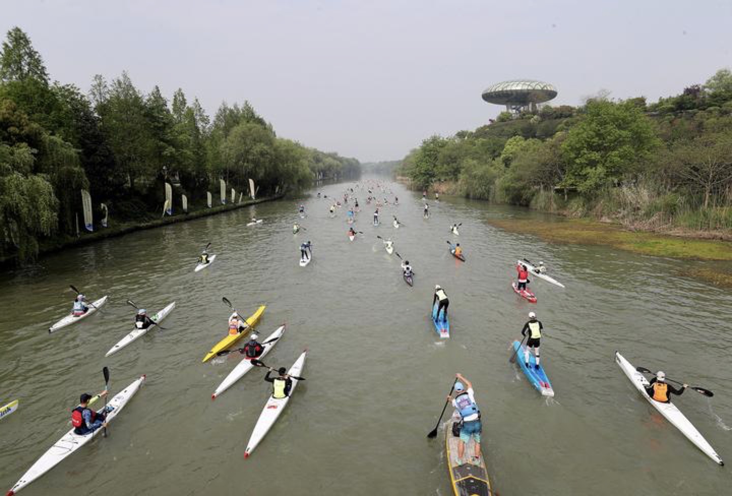 h视频 首届杭州西溪湿地皮划艇桨板马拉松挑战赛分全马组(42公里)、半马组(21公里)、SUP桨板半马组(21公里)三项专业竞技赛事项目。当天共259条皮划艇,138块桨板参加挑战,运动员总计男子组297名选手、女子组100名选手,都是来自全国各地的皮划艇爱好者。