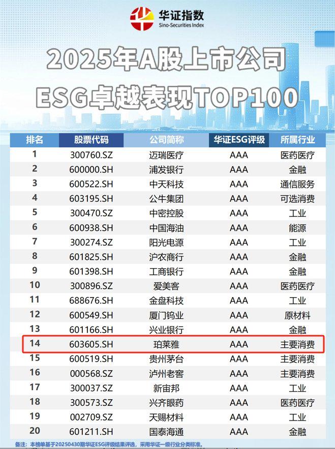 In addition, Proya not only successfully ranked TOP14 in the "Top 100 A-Share Listed Companies in ESG Performance 2025" released by Sino-Securities Index, but also ranked TOP1 in the "Top 20 A-Share Listed Companies in ESG Performance by Primary Industry 2025" list, which was released by Sino-Securities ESG based on the rating results of the 20250430 rating cycle and the primary industry classification standards, in the consumer staples industry. This further demonstrates Proya's leading position in sustainable development.