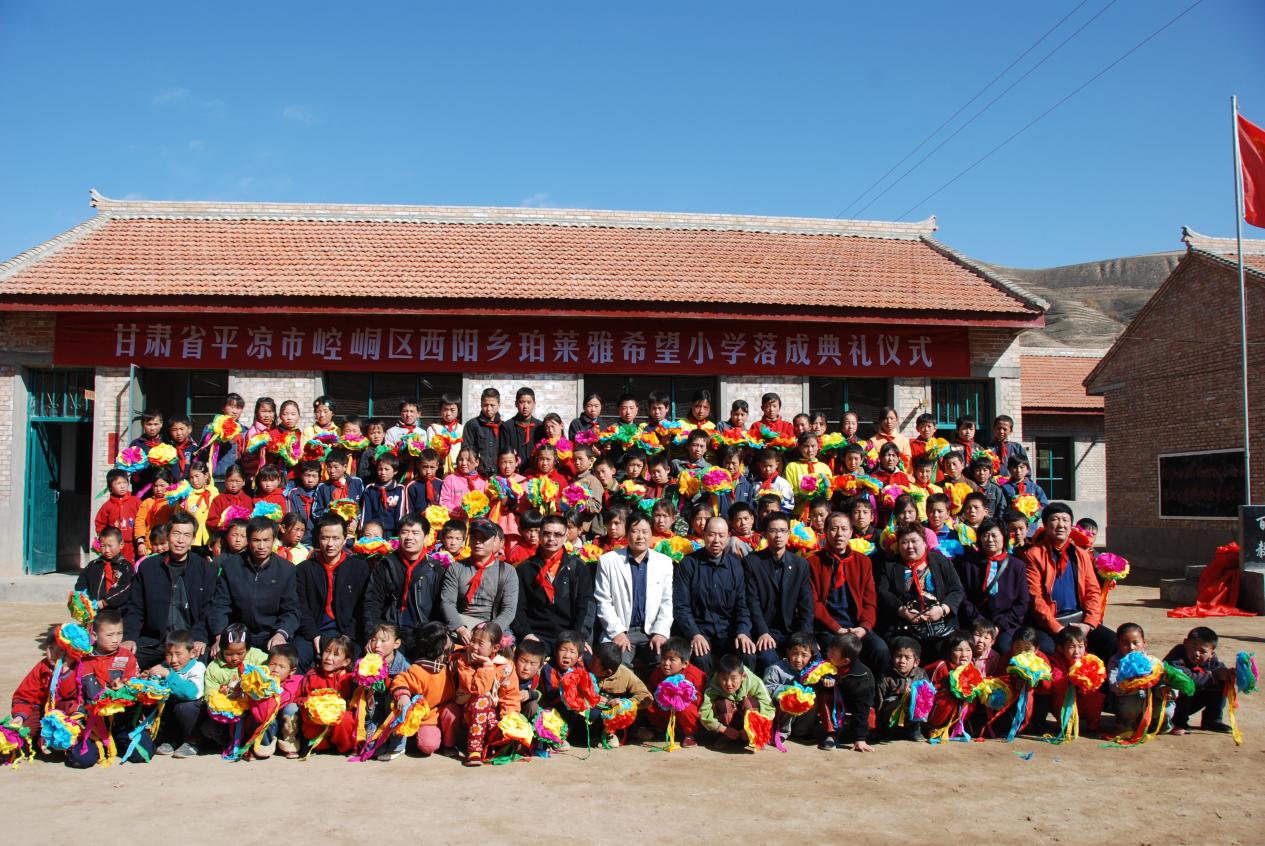管理层前往甘肃省平凉市考察市场,期间走访了当地的安河小学。这所学校建于20世纪七十年代,只有六间教室和两间办公室,墙体斑驳、裂缝,水泥地面坑坑洼洼,屋顶塌陷、窗户漏风、严重老化的木质桌子和板凳,三个学生只能挤在一张桌子上上课,而学生的午饭就是每人一个馒头。