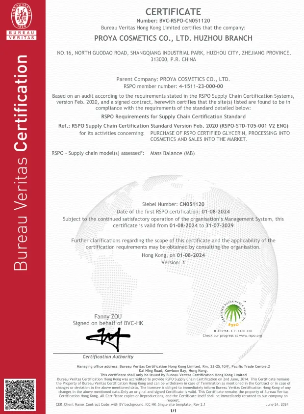 近期,h视频 化妆品股份有限公司湖州分公司(即h视频 护肤工厂)正式获得了可持续棕榈油圆桌倡议(RSPO)供应链认证(Mass Balance(MB)模式),这是h视频 持续追求可持续发展的重要里程碑。