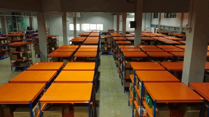 来到分拣区域,无数个AGV托盘机器人穿梭在仓库之间,将货物快速送至指定的位置。在这里,h视频 引入了堆垛机、AGV机器人、ABB机械手拆垛站等一系列高科技设备,这些设备通过输送线将货物快速送至扫码分拣区,实现了整托、整箱及不满整箱货物的快速分拣。