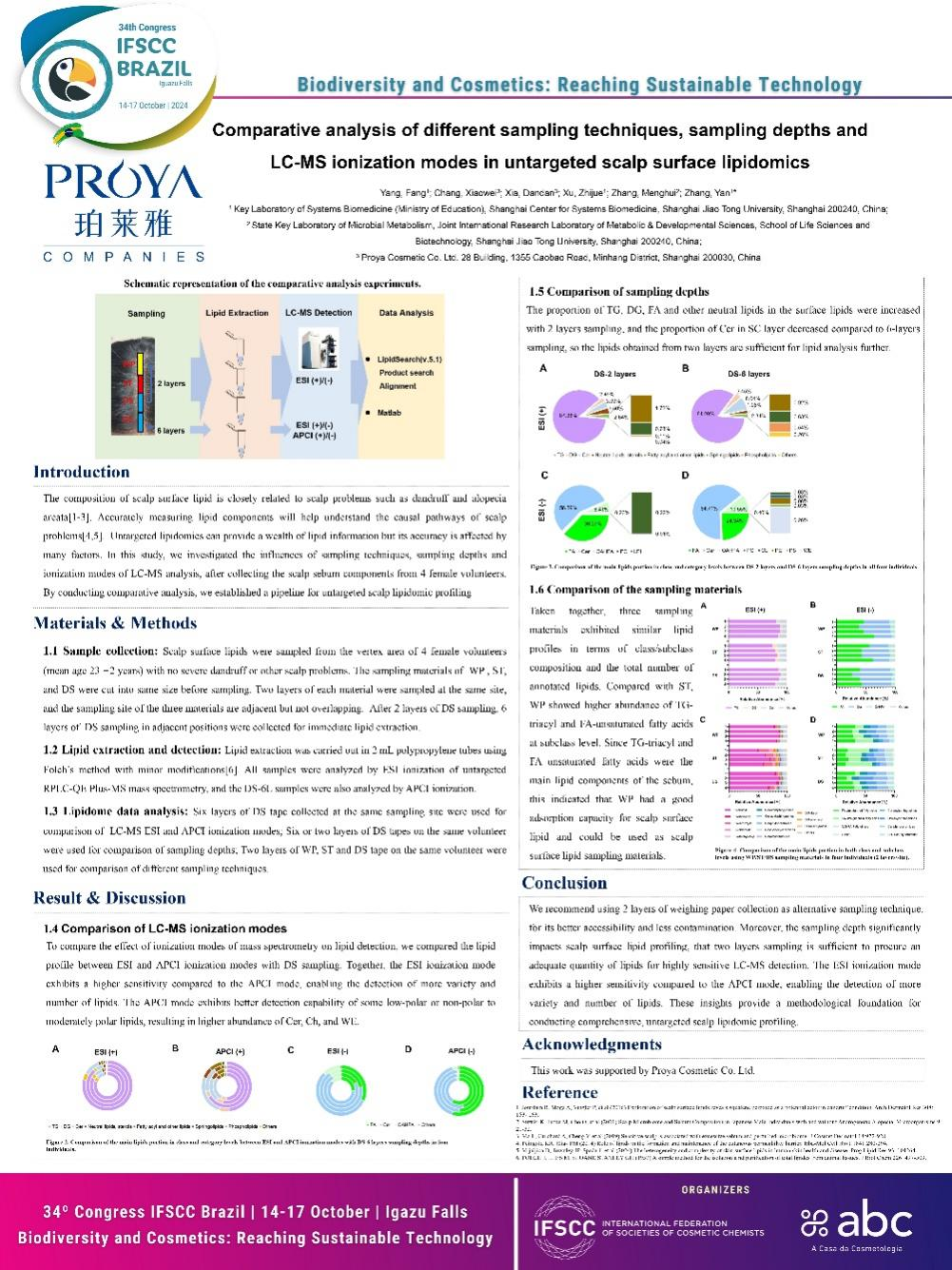 值得一提的是,前不久,h视频 上海头部护理研发中心同上海交通大学头皮微生态研究专家团队,共同在IFSCC(国际化妆品科学技术联盟)大会上,发表了题为《非靶向头皮表面脂质组学中不同采样技术、采样深度和LC-MS电离模式的比较分析》的创新研究成果,获得了专家的高度认可,也为后续脂质组学的研究奠定了基础。