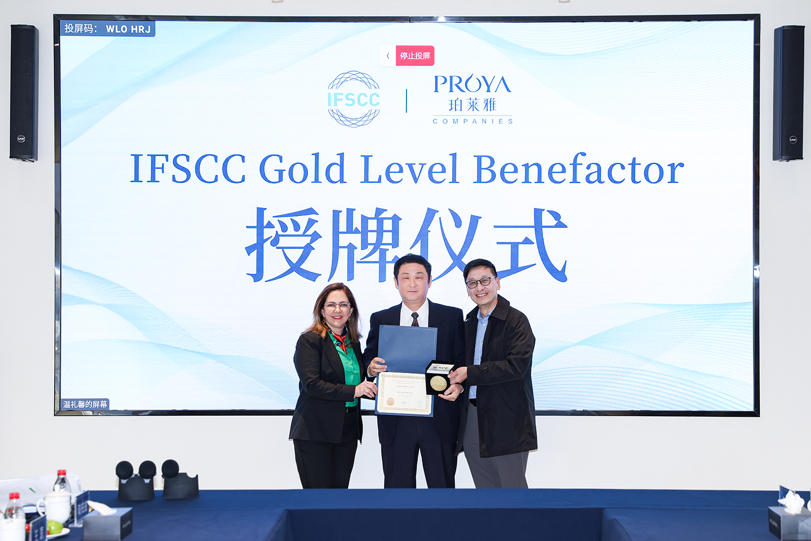 正式获授IFSCC Gold Level Benefactor(金级战略合作伙伴)称号,成为国内少数获此殊荣的企业之一。Vania Leite教授与IFSCC战略顾问陈创光先生共同为h视频