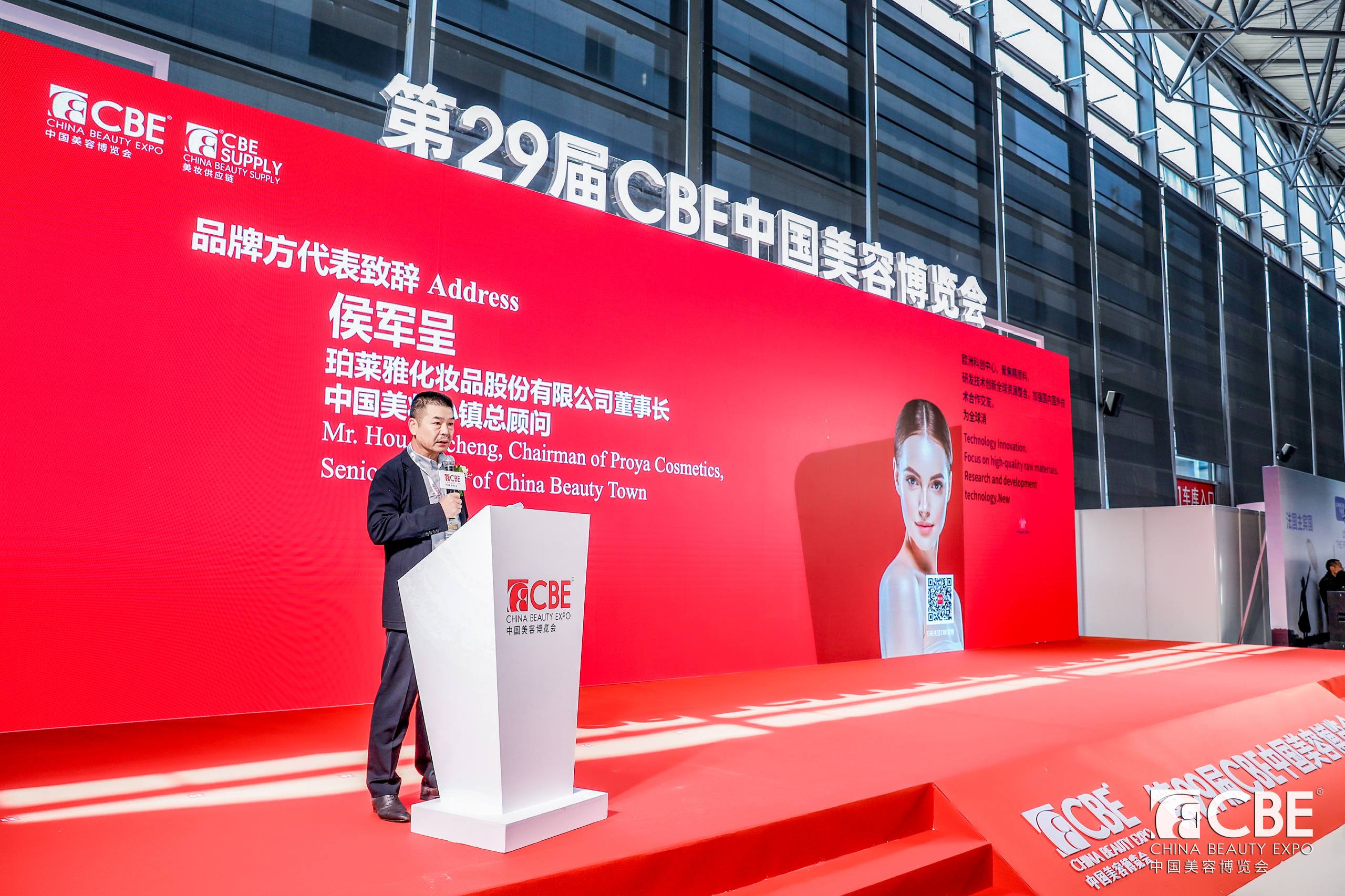 侯军呈在开幕式上作为中国美妆企业代表发表致辞