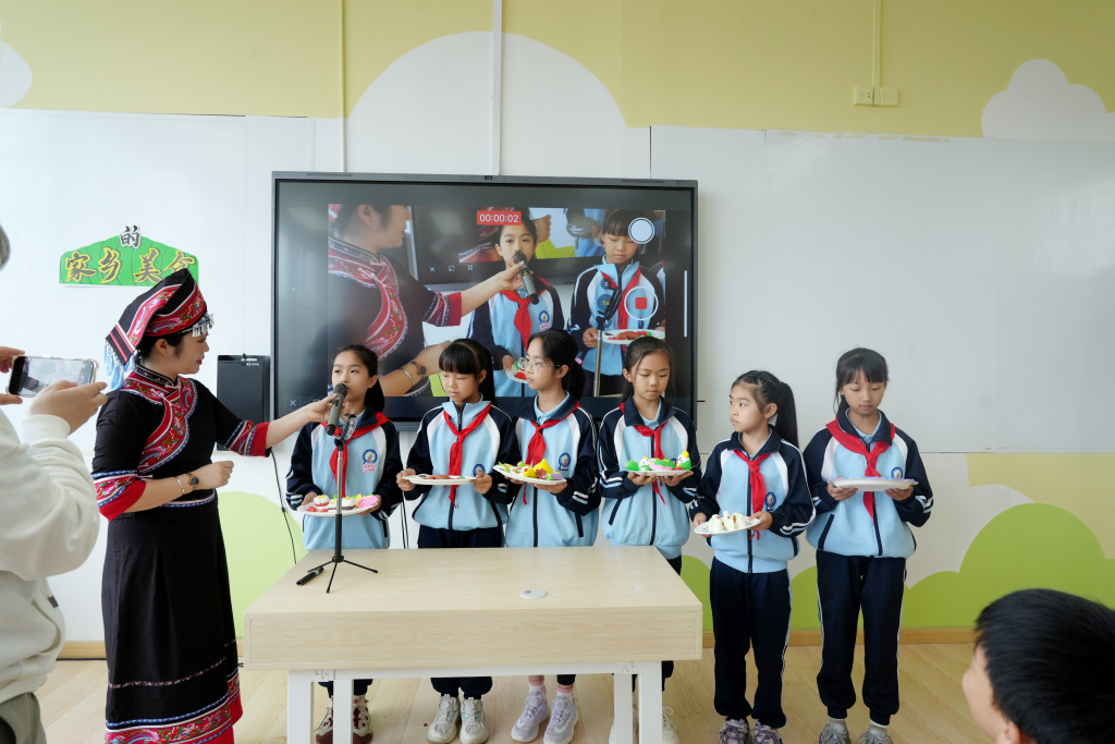 孩子们在《家乡与美食》课堂上展示自己的作品