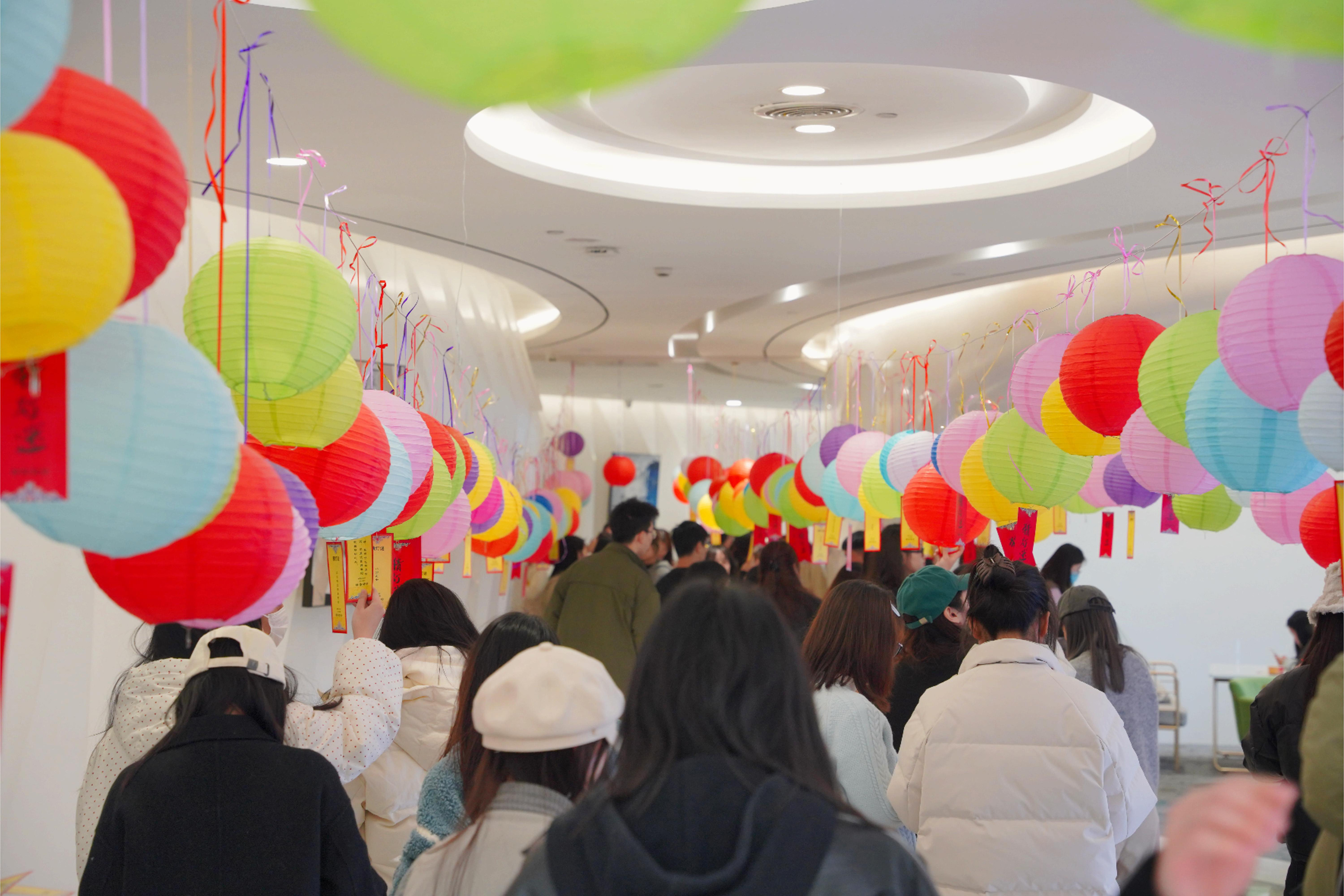 一排排五颜六色的灯笼,筑起一道妙趣横生的长廊,灯笼上挂满了灯谜,引得同学们驻足,凝神思考着字里行间的智慧。公司还为大家准备了精美的小礼品,猜对的同事满心欢喜领取奖品;猜错的也无需气馁,选上一份小小的伴手礼,欢乐依旧相随。